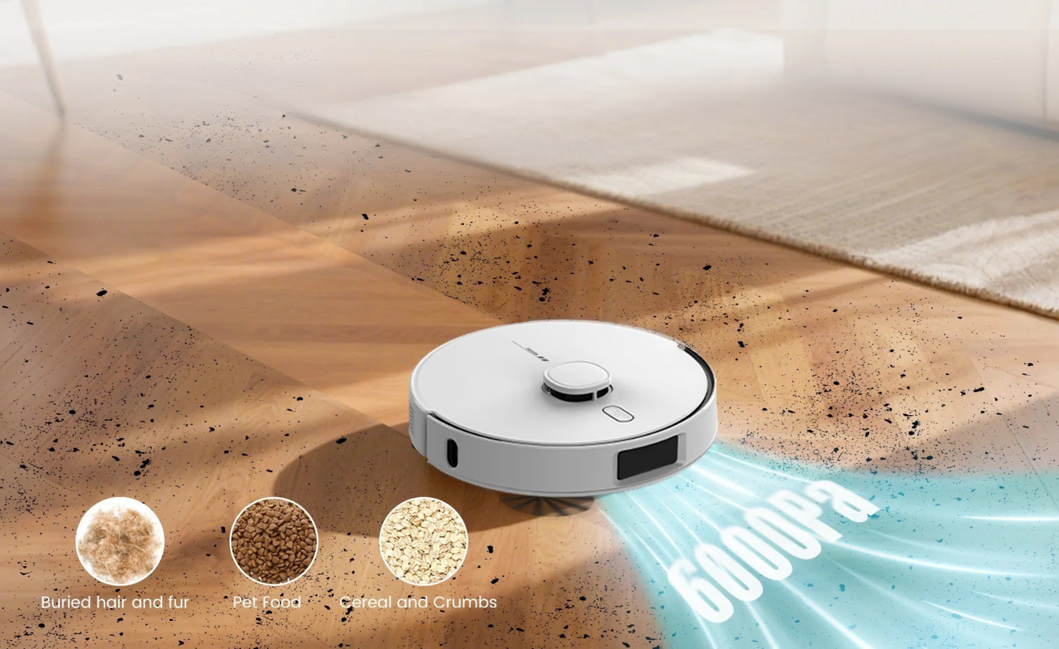 Då har du hittat rätt –"Låt vår smarta robotdammsugare göra jobbet. Med extrem sugkraft på 6000 Pa, laser-navigering, självtömning och moppfunktion får du ett hem som alltid känns fräscht och tryggt – för hela familjen."